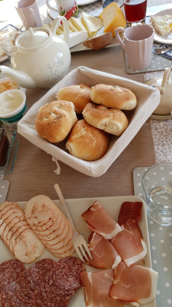 Tipp: Legutóbb gasztrobarátainkat kápráztattam el azzal, hogy reggel a frissen sült zsemle illatára ébredhettek, szóval az a művelet, hogy kelesztés után tepsire kerül a péksüti és megy a hűtőbe, reggel pedig csak sütöm, nagyon jól működik.