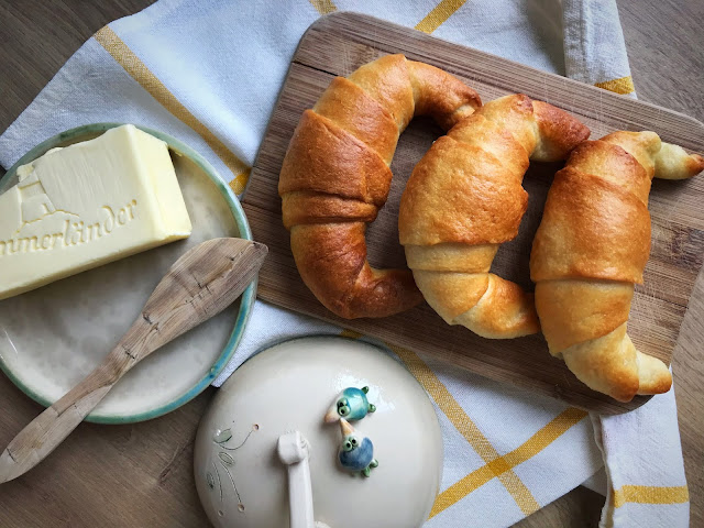 Tegnap mivel semmilyen pékáru nem volt itthon, nekiálltam kiflit sütni. A középső gyermekünk egy kis megfázással itthon van, így nyilván őt kérdeztem meg, hogy milyet süssek. Ő a sós rúdra, a slanacra szavazott, aminek receptjét nemsokára megosztom majd veletek, de én már ezt a vajas patkót is kinéztem egy ideje, így mindent csináltam egyszerre. Összesen 36 kifli illetve rúd készült, amivel azt hiszem egész hétre elláttam magunkat. Nagyjából a felét lefagyasztottam, mert kipróbáltuk, kiolvasztás után is nagyon finom, a hétre a házi pékség azt hiszem teljesített.
