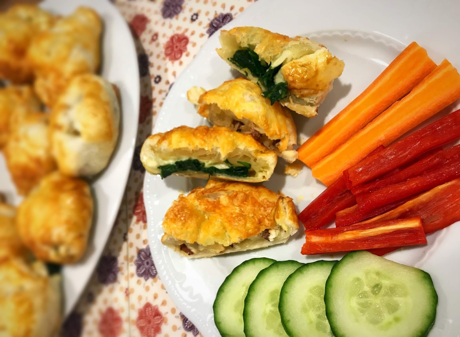 A spenótot egy kevés olajon megfonnyasztom, és egy villára szúrt fokhagymával kevergetem, aminek az ízét így remekül átveszi a zöldség. Egy másik serpenyőben megpirítom a bacont, és már indulhat is az összeállítás. Mindkét tésztát kitekerem, felvágom 8 négyzetre, majd az egyik tekercsen elosztom a spenótot és ráhelyezek mindegyikre 1-2 szelet camambert vagy brie sajtot, a másik tekercsen a sajtkrémet osztom szét és a pirított bacont. Minden kis négyzetnek összecsípem a négy sarkát és készen is vannak a batyuk, megkenem őket felvert tojással, amit picit sózok, és megszórom sajttal, majd mehetnek is a sütőbe nagyjából 20 percre.