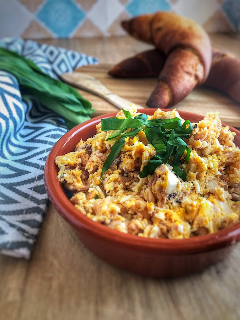 Na, de azért 3 tojást sikerült kimentenem a kocogtatás alól, és főtt sonkánk pedig még van jócskán, mert idén elég nagy darabot sikerült beszerezni, így elkészítettem ezt a maradékmentő sonkás tojáskrémet, vagy tojásos sonkakrémet, magam sem tudom igazán melyik a jobb kifejezés, illetve Férjem szerint ez inkább ilyen saláta szerű, mert nem igazán kenhető állagú, annál darabosabb lett, nyílván ezt több vaj hozzáadásával tudjátok javítani, de én úgy gondoltam elég kalória volt a napokban, nincs szükség most több vajra.