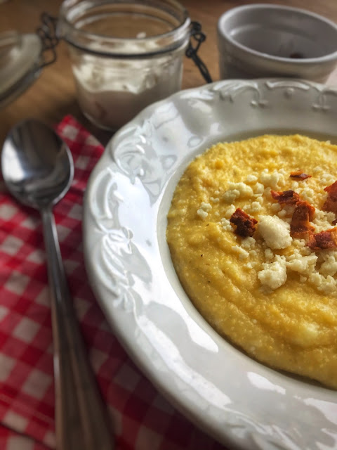 Félig erdélyi szülők és nagyszülők gyermekeként nálunk a puliszka olyan alap, egyszerű étel, mint másoknál a tejbegríz. Nagymamám készített sokat, majd Anyu is átvette, és így én is. Lehet ezt enni édesen lekvárral, mint a tejbegrízt, sósan, ahogyan mi is most, köretként, vagy ha keményre főzik akkor szeletelve hidegen, vagy akár azt panírozva és kirántva is.