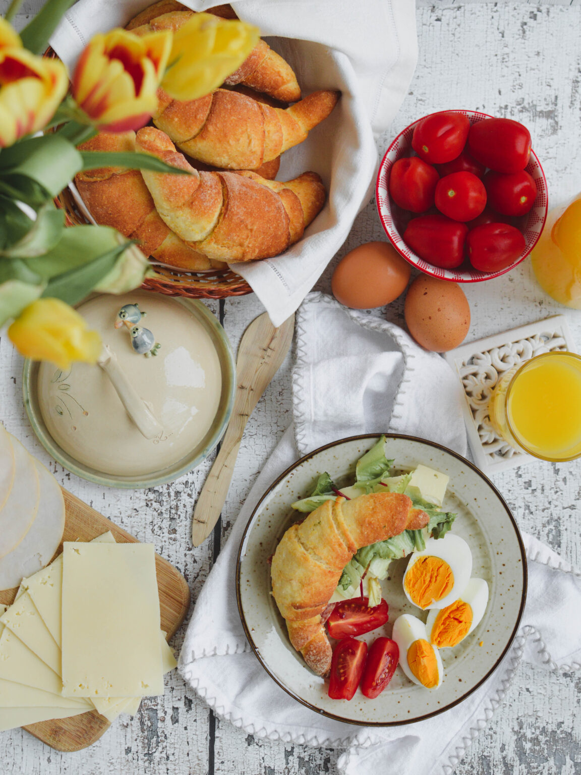 Nincs is jobb hétvégén, mint egy ráérős reggeli, csupa finomsággal az asztalon. Ilyenkor a házi készítésű pékárura is több idő jut, és én rendszeresen csinálom azt, hogy este megcsinálom, megformázom jelen esetben a kifliket, beteszem őket tepsin a hűtőbe, éjszaka ott megkelnek és így reggel elég csak fél órával előbb kelni a családnál, megsütjük őket, és már ehetjük is a friss, meleg, ropogós pékárut a reggeli mellé.