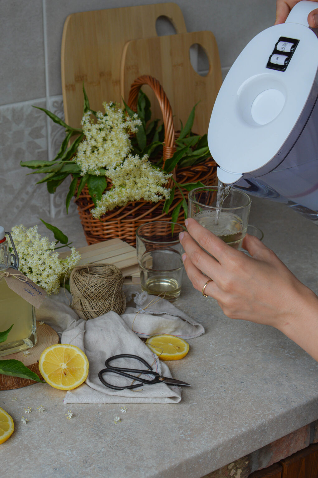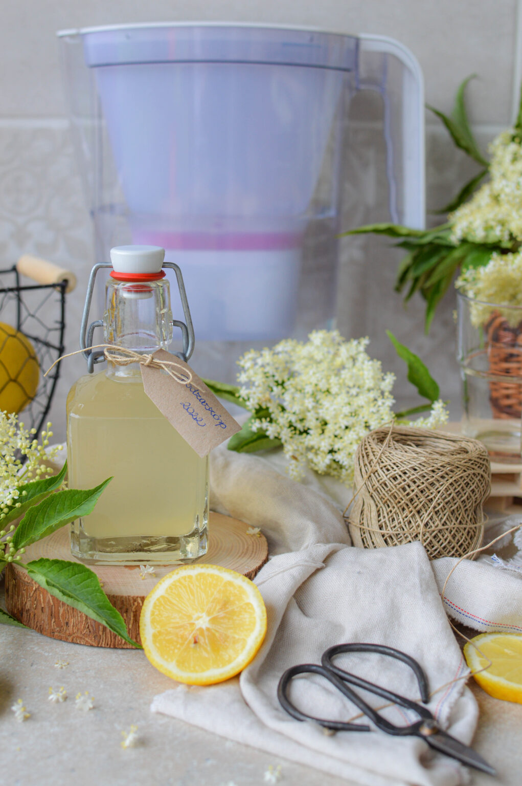 A vízből és a cukorból szirupot főzünk: forrástól számított 10 percig forrni hagyjuk, majd langyosra visszahűtjük. Ekkor beletesszük a lerázott, de nem megmosott virágfejeket, lenyomjuk őket a felszeletelt citromokkal, konyharuhával letakarjuk, majd 2 napig állni hagyjuk, és néha megkeverjük.